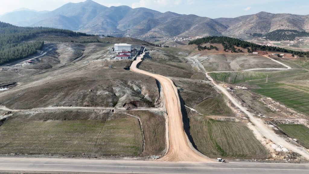 Büyükşehir Belediyesi, inşası tamamlanarak eğitime yeni başlayan Türkoğlu Mesleki ve Teknik Anadolu Lisesi yolunu sıcak asfaltla kaplıyor.