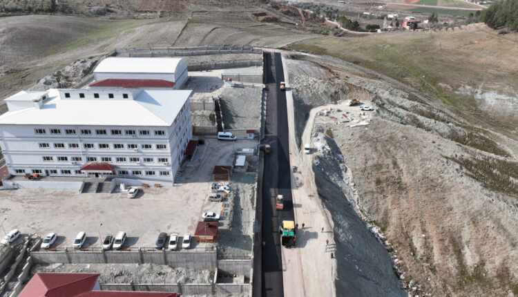 Büyükşehir Belediyesi, inşası tamamlanarak eğitime yeni başlayan Türkoğlu Mesleki ve Teknik Anadolu Lisesi yolunu sıcak asfaltla kaplıyor.