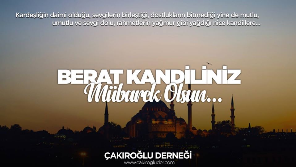 Çakıroğlu Derneği başkanı Muhammet Kamalak, Berat Kandilini kutlayarak, kandil dolayısıyla bir mesaj yayınladı.