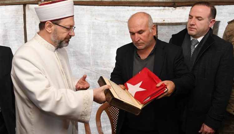 Erbaş, şehidin babası Ali Deniz’e, Kur’an-ı Kerim ve Türk bayrağı hediye etti.