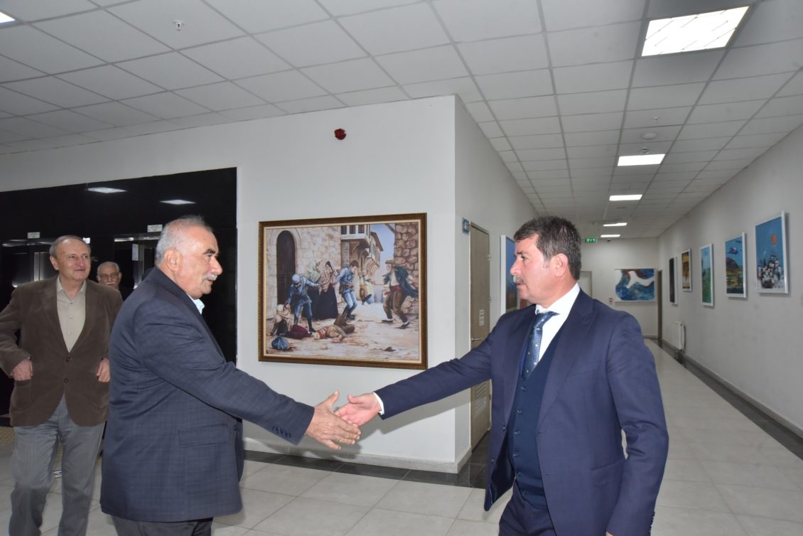 Kahramanmaraş’ın ilçe ve kapanan eski belde Belediye Başkanlarından; Göksun Belediye Başkanı Ramazan Hurç, Göksun-Değirmendere Belediye Başkanı Mehmet Kişioğlu, Afşin-Bağraç Belediye Başkanı Davut Yalçın, Andırın-Geben Belediye Başkanı Vahit Kahveci, Çağlayancerit-Helete Düzbağ Belediye Başkanı Mehmet Saygaz, Afşin-Arıtaş Belediye Başkanı Yusuf Gülden, Afşin-Büyüktatlar Belediye Başkanı Bayram Ali Köse, Andırın-Geben Belediye Bakanı Memiş Daş, Karadere Belediye Başkanı Hasan Keklikçi ve Şahinkayası Belediye Başkanı Bahattin Kurtoğlu ile birlikte Türkoğlu Belediye Başkanı aynı zamanda Türkiye Belediye Başkanları Birliğinin Kahramanmaraş temsilcisi Osman Okumuş’u makamında ziyaret ettiler.