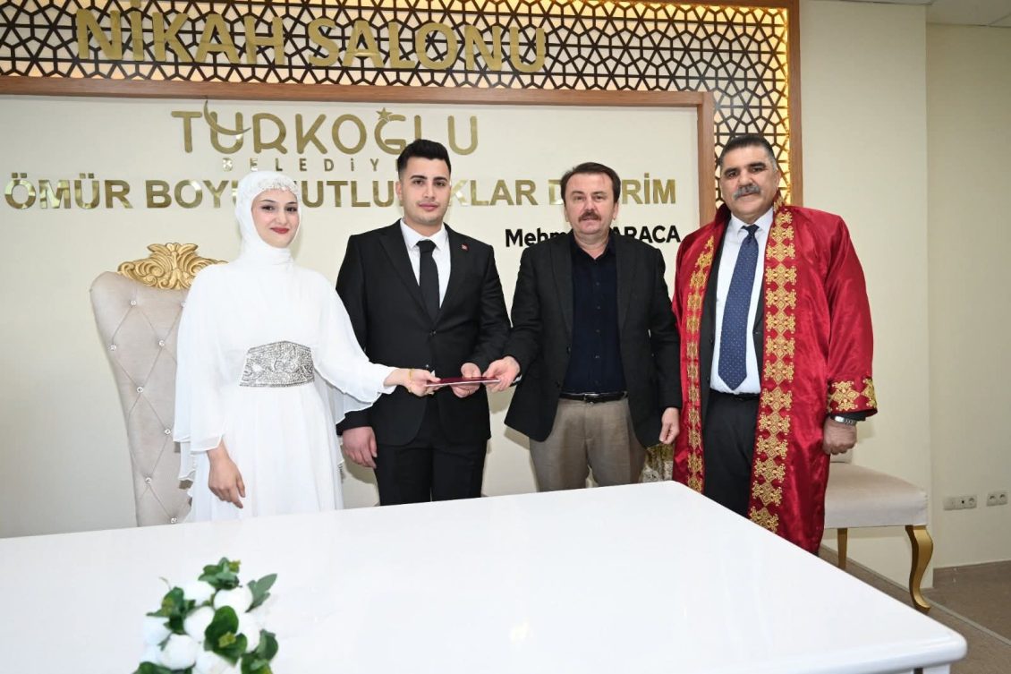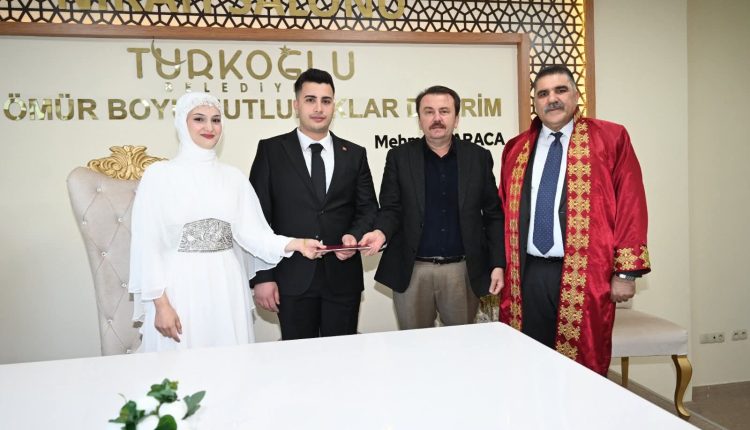 Fatih Mehmet Erkoç başkan deprem şehidi Muzaffer Türk’ün oğlunun Türkoğlu Belediyesi’nde Mehmet Karaca tarafından kıyılan nikahına katıldı. Nikah şahidi olarak büyük bir vefa örneği gösterdi.