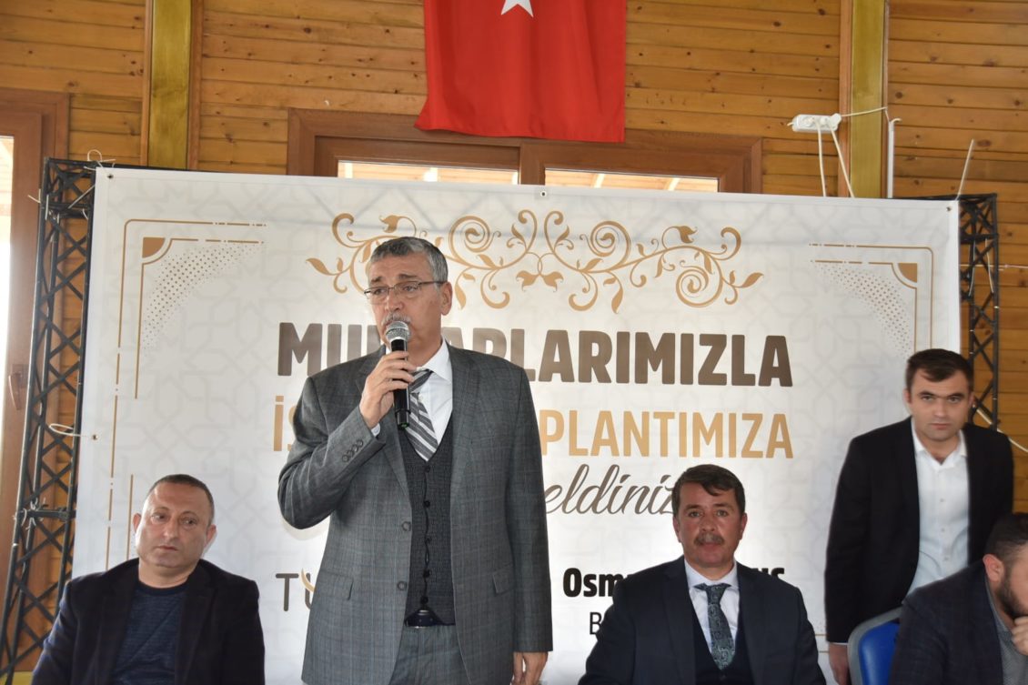Nazik ev sahiplikleri için değerli İlçe Başkanıma, değerli Belediye Başkanıma, İl Yönetimindeki kıymetli arkadaşlarımıza ve koordinatörlerimize çok teşekkür ediyorum. Bu vesileyle de gene Türkoğlu’nda Fabrikası bulunan değerli Suriye’li iş adamı istihdam sağlayan Hüssam Eddin Tatari Beyi de ziyaret ettik. Ondan da istifade ettik. İlçenin ekonomik durumu, son gelişen asgari ücretin durumu, tekstil sektörünün sorunlarıyla ilgili bir değerlendirme de bulunduk. Onda da şehrimize yaptığı katkılar, ödediği vergiler, sağladığı istihdam için teşekkür ediyorum. ”diyerek konuştu.