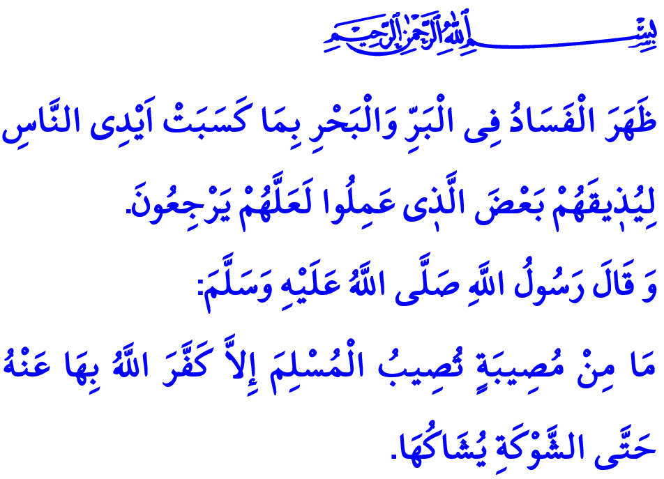 Okuduğum ayet-i kerimede Yüce Rabbimiz şöyle buyuruyor: “İnsanların kendi elleriyle yapıp ettikleri yüzünden karada ve denizde düzen bozuldu; böylece Allah dönüş yapsınlar diye işlediklerinin bir kısmını onlara tattırıyor.”[1]