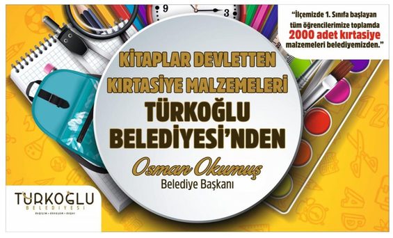 Türkoğlu Belediye Başkanlığı, “Kitaplar Devletten, Kırtasiye Malzemeleri Türkoğlu Belediyesinden” sloganıyla 2021-2022 Eğitim Öğretim yılında ilçe genelinde ilk okul birinci sınıfa başlayacak olan yaklaşık iki bin öğrencinin kırtasiye ihtiyacını karşılamak için çalışmalara başladı.