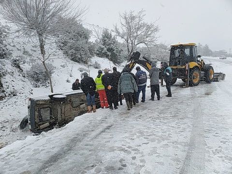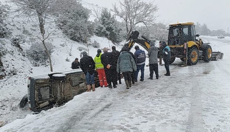 Kahramanmaraş‘ın Türkoğlu ilçesinde bir araç karlı yolda kayarak kaza yaptı.