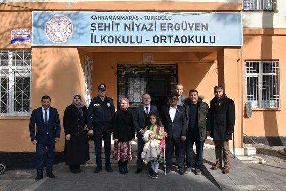 Türkoğlu Kaymakamı Gürbüz SALTAŞ, Harp Malulü Gaziler Şehit Dul ve Yetimler Derneği Kahramanmaraş Şube Başkanı Yunus KAHRAMAN ile birlikte Güneydoğu Gazisi Fatih KARACANOĞLU’nun kızı Ceren KARACANOĞLU’nu evinden alarak okula götürdüler sonrasında kendisine sınıfına kadar eşlik ettiler.