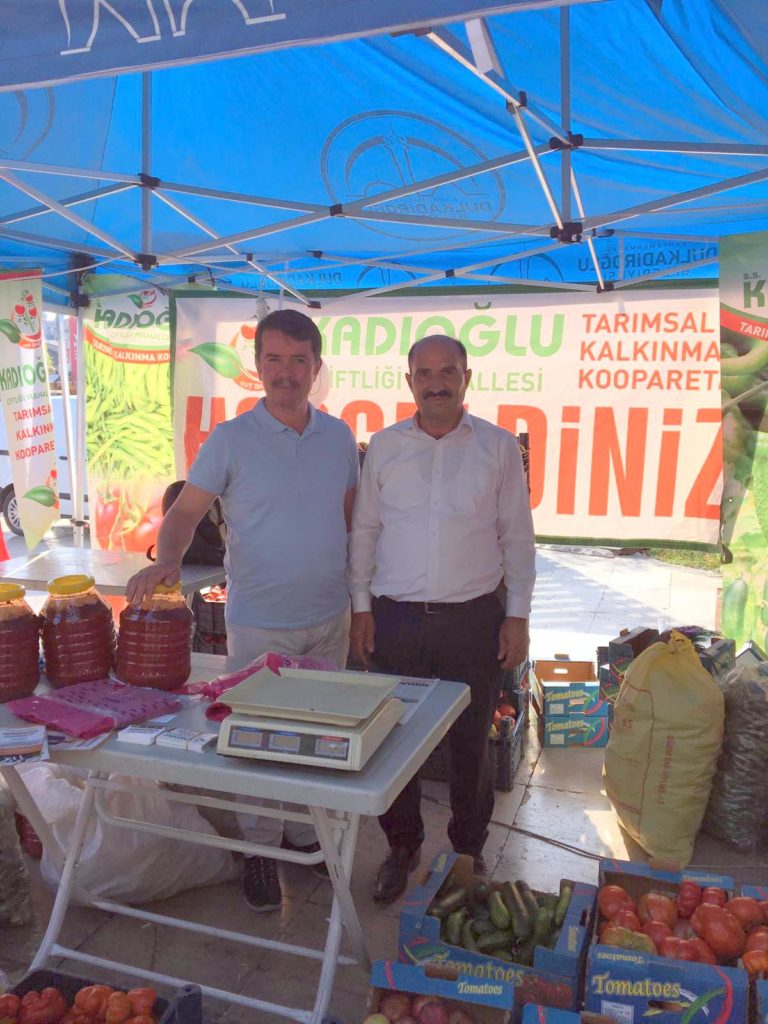Türkoğlu Belediye Başkanı Osman Okumuş da Bertiz Şıra (Masere) Festivali kapsamında stant açarak Türkoğlu ilçesi Kadıoğlu çifftliği mahallesinde yetiştirilen ürünlerin tanıtımını yapan KadıoğluÇiftliği Mahallesi Tarımsal Kalkınma Kooperatifi Başkanı Necip Duran’ı ziyaret etti.