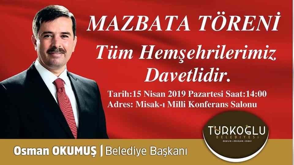 31 Mart Yerel Seçimlerinde toplamda dördüncü kez Türkoğlu Belediyesinde ise ikinci kez başkan seçilen Osman Okumuş itirazlar nedeniyle mazbatasını 15 Nisan tarihinde alacak. Cumhur İttifakı AK Parti Türkoğlu Belediye Başkan adayı olarak 31 Mart Yerel seçimlerine katılan Osman Okumuş oyların yüzde ellisinden fazlasını alarak ikinci kez Türkoğlu Belediye Başkanı seçildi. Ancak Bağımsız adayın süreci uzatma adına önce ilçe seçim kuruluna ve il seçim kuruluna itiraz etti daha sonra Yüksek Seçim Kuruluna başvuruda bulunmuştu. Tüm ilgili kurumlar bağımsız adayın iddialarını yersiz bulmuş ve reddetmişti. Ancak bu nedenle süreç uzamıştı.