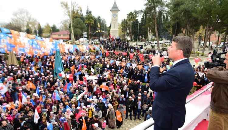 “Son iki aydan beri bizleri yalnız bırakmadınız. Her gün bizimle beraberdiniz bugünü saymazsak bir gün kaldı. Cumhur ittifakının Pazar günü akşam rekorla Türkoğlu’ndaki sandıkları Ankara’ya göndereceğiz. Türkoğlu her zaman ak partinin yanında yer aldı diye mesaj göndereceğiz. 2014 yılında Türkoğlu ilçemize belediye başkanı olarak seçildikten sonra 5 yıl içerisinde ilçemize bir katrilyonun üzerinde yatırım yapıldı. Büyükşehir belediyemiz ve hükümet yatırımlarımız da ilçemiz kurulduktan sonraki aynı şartlarda olan ilçelere göre daha fazla yatırım aldı. Türkoğlu değişiyor, değerleniyor. Seçildikten sonra projelerimizi bir bir yapmaya başladık. İlk olarak Kılılı’daki kum ocağımızı faaliyete açtık. Günde bin 500 metrekare parke üreten fabrika kurduk. 2014 yılından önce Türkoğlu 1960 yılından beri aynı Türkoğlu deniyordu. 2014 yılından sonra bize destek veren Türkoğlu halkına şeref duyuyoruz. Seçimlerden sonra belediyemiz daha önce olduğu gibi her zaman kapısını vatandaşlara açık tutacak. Bizler sizlerin bu duruşunu hiçbir zaman unutmayacağız.