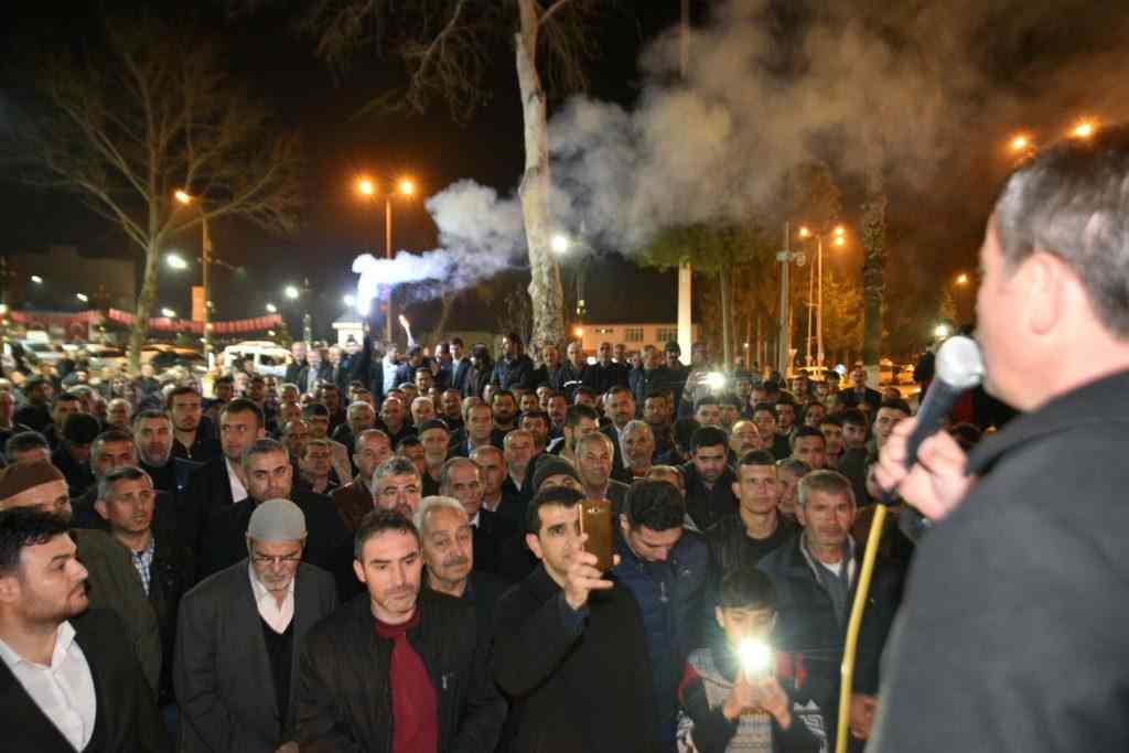 Türkoğlu Millet Meydanında vatandaşlara bir teşekkür konuşması yapan Türkoğlu Belediye Başkanı ve Cumhur İttifakı AK Parti Türkoğlu Belediye Başkan Adayı Osman Okumuş son beş yılda Türkoğlu ilçesinde ve mahallelerinde yapılan prestij projelerini anlattı.