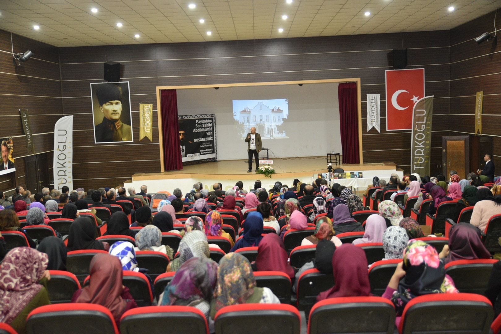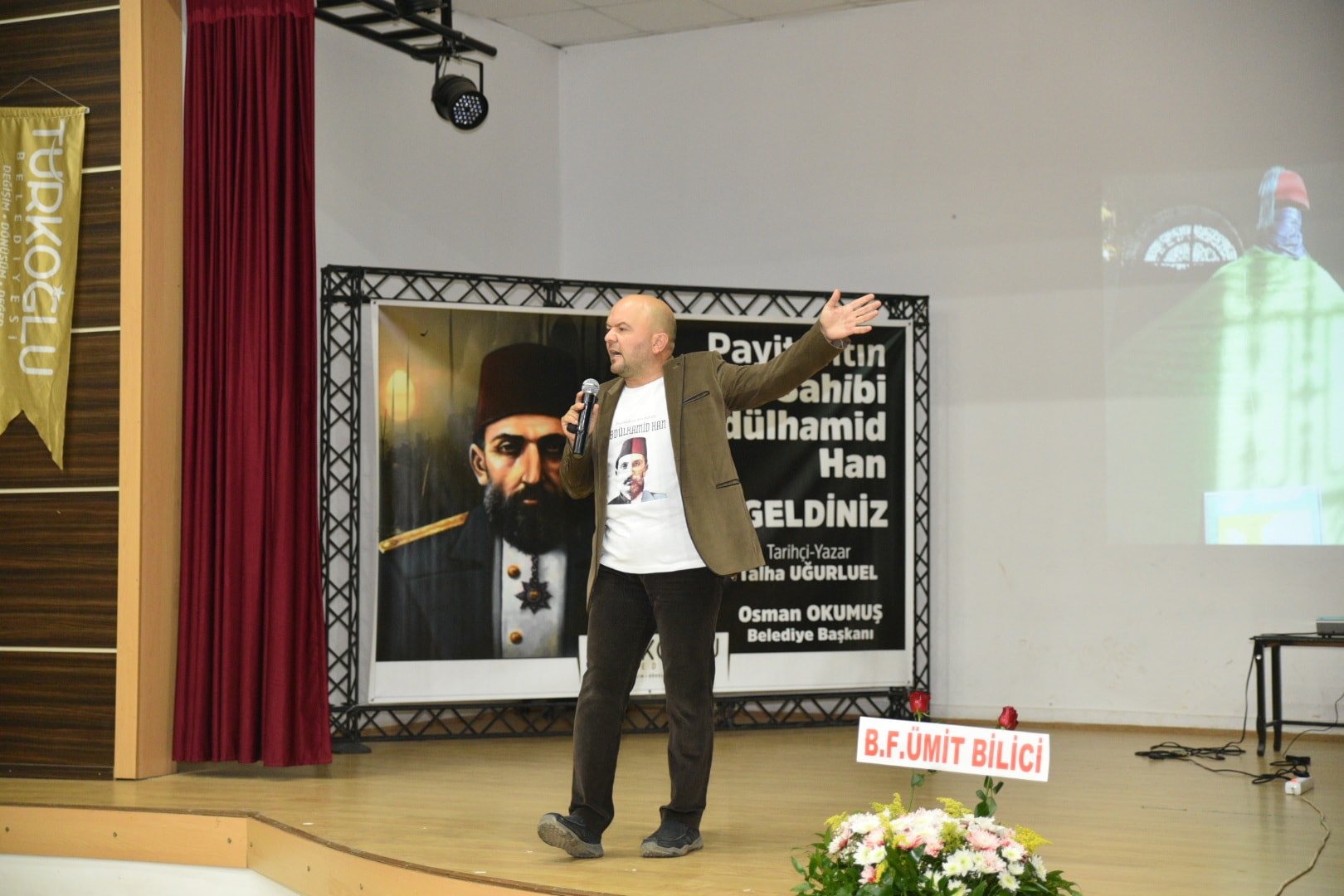 Tarihçi-Yazar Talha Uğurluel, ‘Payitahtın Son Sahibi Abdülhamid Han’ konulu konferansta Türkoğlululara Abdulhamid Hanı anlattı.