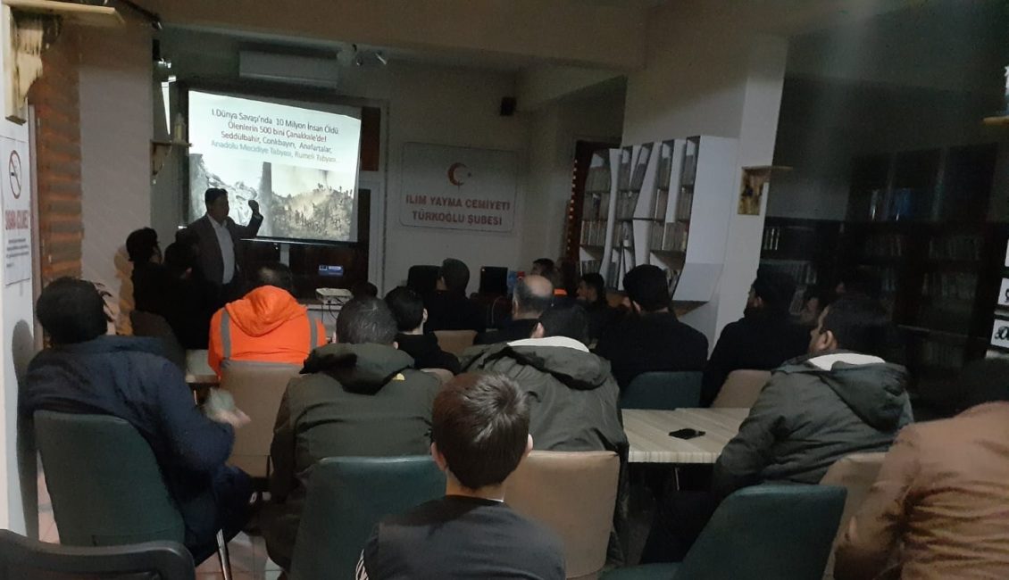 Türkoğlu Kitap Kahve’de yapılan programa vatandaşlar yoğun ilgi gösterirken program İlim Yayma Cemiyeti Türkoğlu Şubesi Eğitim Birim Sorumlusu İdris Karaburç’un kuran-ı kerim tilaveti ile başladı. Tarihçi Yazar Işık, Fransız devriminden başlayarak Osmanlı İmparatorluğu, Avrupa ve dünyanın birinci dünya savaşı öncesi durumlarını, savaşa gidilen süreçleri, devletlerin savaşa katılma nedenleri gibi temel ve önemli hususlara değindikten sonra savaşın genel seyrini anlattı. Çanakkale savaşının Osmanlı tarafından kazanılmasının birinci dünya savaşına ve dünyaya etkisine değinilirken program sonunda dinleyicilerin soruları cevaplandırıldı.