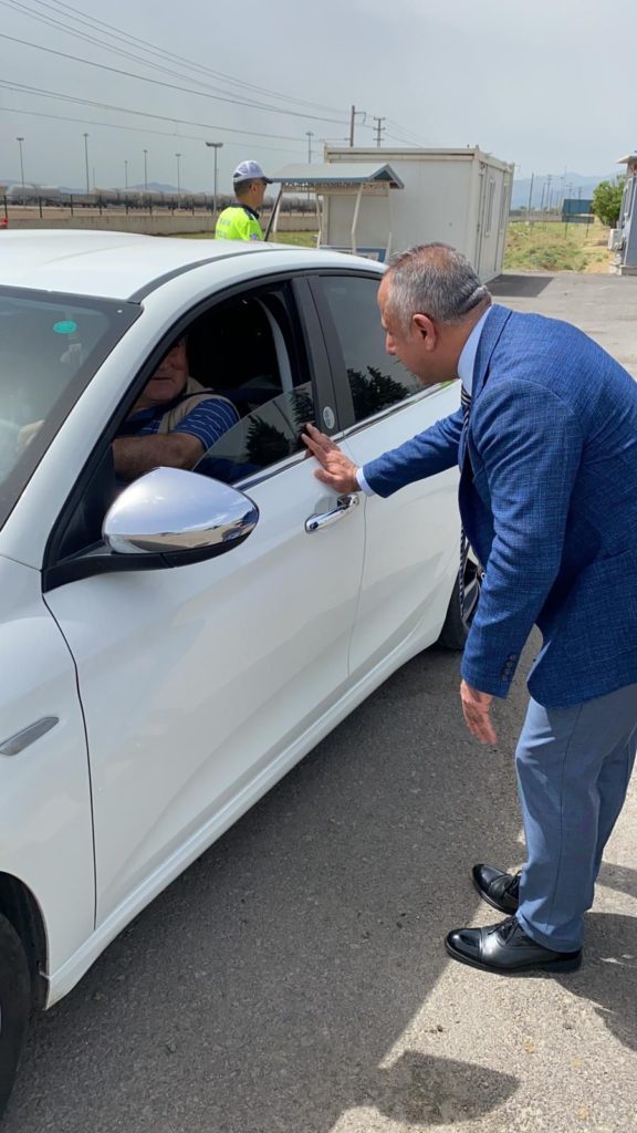 Türkoğlu Kaymakamı Mahmut HERSANLIOĞLU, Ramazan Bayramı öncesi sevinçlerin acıya dönüşmemesi, bayram evinin yas evine dönüşmemesi için İçişleri Bakanlığımızın talimatları gereği Bölge Trafik ve Jandarma Trafik ekipleri ile birlikte sürücüleri emniyet kemerinin hayat kurtardığı yönünde ikaz ve bilgilendirme çalışmalarına katılarak sürücülere Bayramımız kemerli olsun uyarılarında bulundu.