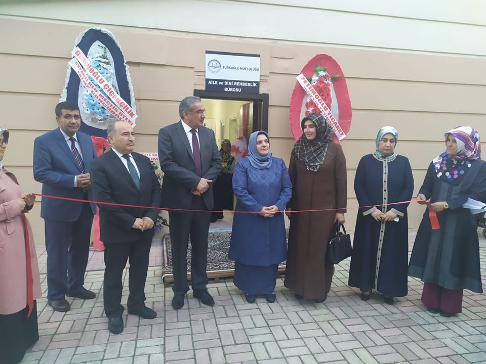 Aile ve Dini Rehberlik Bürosunun açılışına Diyanet İşleri Başkanlığı Aile Dini Rehberlik Dairesi Başkanı Sedide AKBULUT, Kahramanmaraş İl Müftüsü Sayın Celal SÜRGEÇ, İl Müftü Yardımcısı Remziye KÖROĞLU, Türkoğlu İlçe Müftüsü Abdullah RENCBER katıldı.