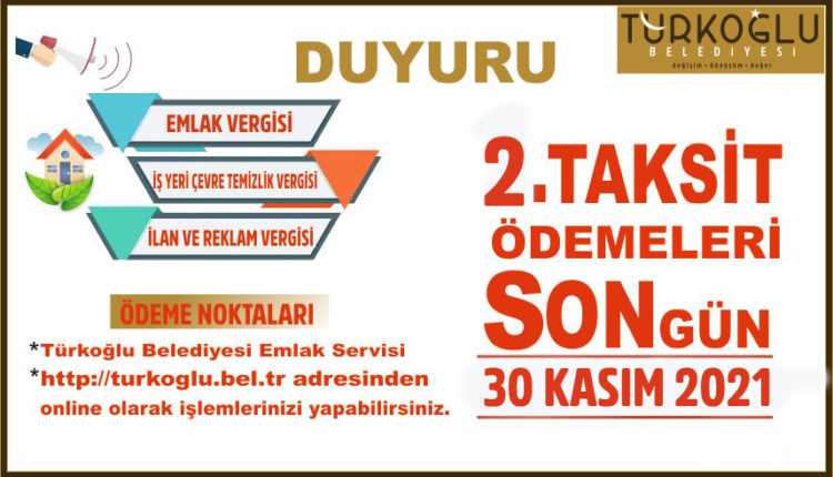 Türkoğlu Belediye Başkanlığı, Emlak vergileri ödemelerinin 31 Kasım tarihine kadar yapılması için vatandaşlara çağrıda bulundu.