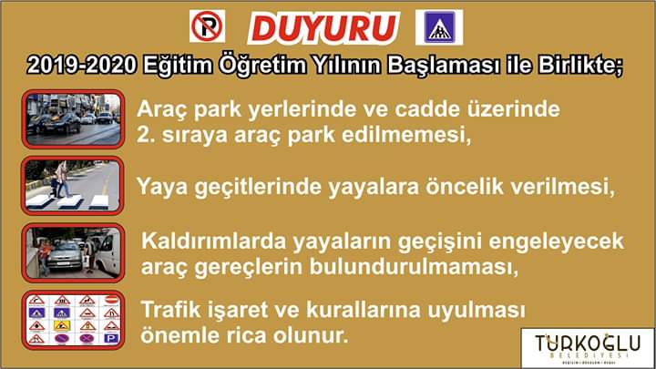 2019-2020 Eğitim öğretim yılının başlamasıyla birlikte Türkoğlu Belediye Başkanlığı vatandaşları kurallara uymaları konusunda uyardı.