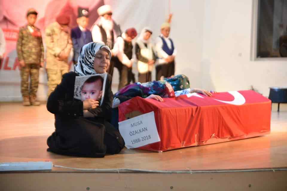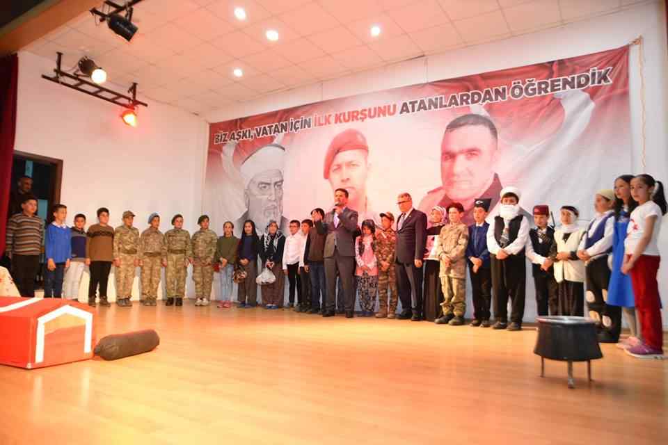 Türkoğlu Belediyesi ve Uzunsöğüt İlkokulu işbirliği ile Misak-ı Milli Konferans Salonunda ilkokul öğrencilerinin hazırladığı “Biz Çanakkaleyiz” konulu tiyatro düzenlendi.