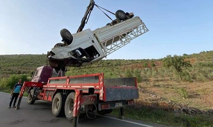 Kamyonet vinç yardımıyla kaza yerinden kaldırılırken Türkoğlu İlçe Jandarma Komutanlığı kazayla ilgili soruşturma başlattı.
