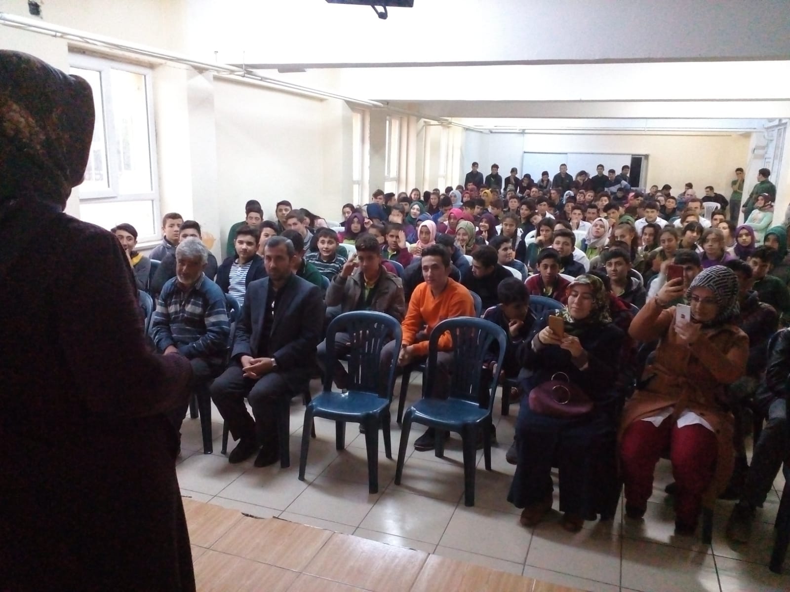 Öğrencilere Okul Müdürü M. Kürşat DURAN, Engelli koordinatörleri Kur’an kursu Öğreticisi Sultan TASLAK, İmam Hatip Durdu Mercimek, tarafından yapılan konuşmalarda; Özürlülük, doğuştan ya da kaza veya uzun süren hastalıklar sonucu bedensel veya zihinsel meydana gelen, kişinin hayatında engeller oluşturabilen duyusal, zihinsel ve diğer yeteneklerinin kaybetmesi olarak anlatılabilir. Evet belki bizler, sizler şu an için özürlü değiliz ancak bu olmayacağımız anlamına gelmiyor değil mi? Engelleri olan insanların bir engeli de siz olmayın. Engelli insanları gördüğünüzde onlara selam verip hal ve hatırlarını sorun, Engelli olan insanların önüne geçip onları, mağdur bırakmayın. Engellilere ait asansörleri kullanıp onların bu imkanlarını ellerinden almayın. Onlar hayatta büyük mücadelelerle her gün yeniden doğuyorlar. Sizlere Dünya Engelliler Günü ne zaman diye bir soru yönetilirse şu cevabı veriniz; her gün, her an. Formalitede 3 Aralık Dünya Engelliler Günü kutlanan bugün bir gün değil, her gündür. Bir yılın 365 günü sokakta, yanı başımızda olan engelli insanlarımıza karşı duyarlı olalım.