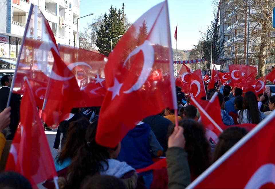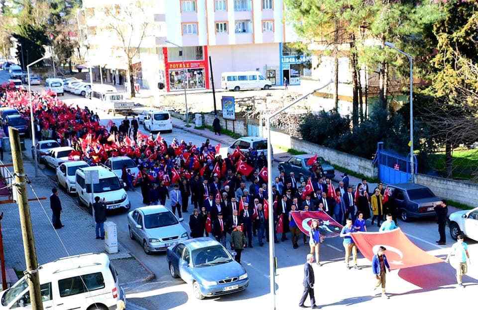 Çanakkale zaferinin 104. Yıl dönümünde bu cennet vatan için can veren, kan döken tüm şehit ve gaziler için, Türkoğlu ilçe protokolü, öğrenciler ve vatandaşlar ŞEHİTLER ÖLMEZ VATAN BÖLÜNMEZ’ sloganları ile yürüdü.