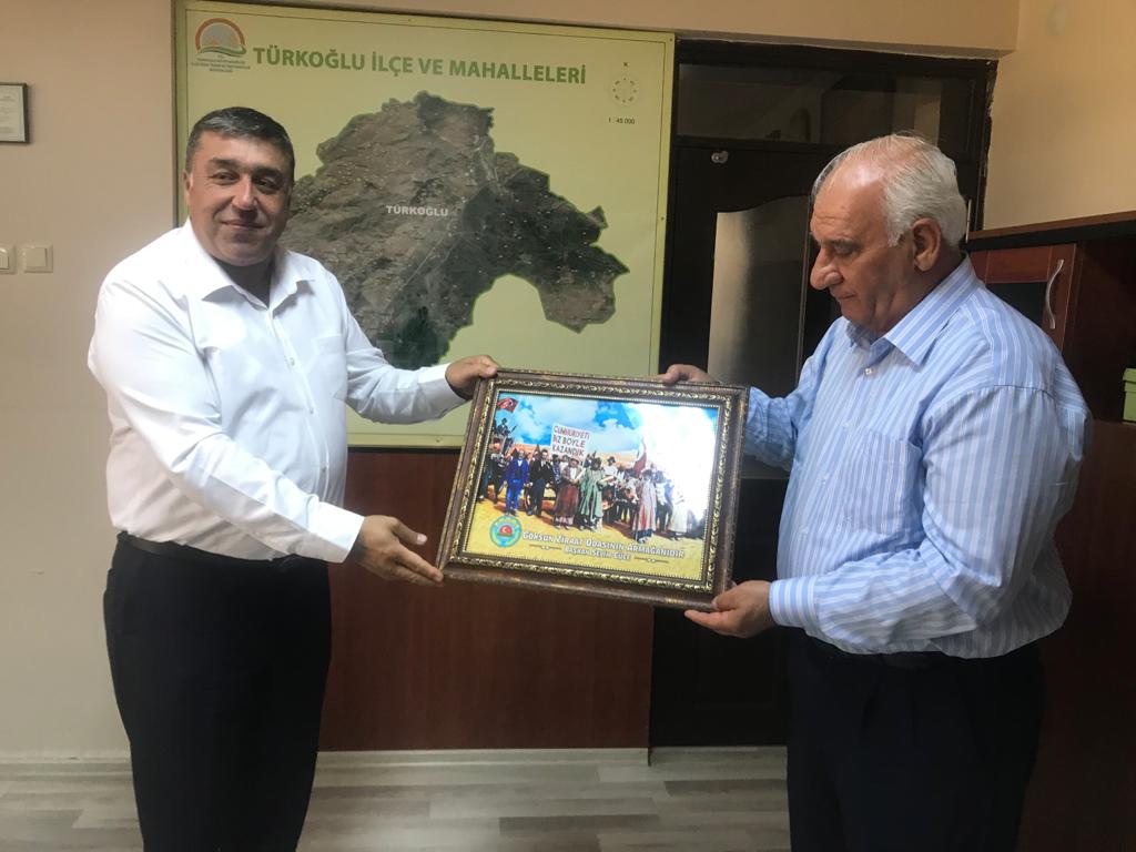 Göksun Ziraat Odası Başkanı Selim CÜCE, Türkoğlu Ziraat Odası Başkanı Mehmet KARACA, ile birlikte Türkoğlu İlçe Tarım ve Orman Müdürü Hikmet KAÇAR’rı ziyarete bulundular anlamlı bir tablo hediye ederek yeni görevinde başarılar diledi.