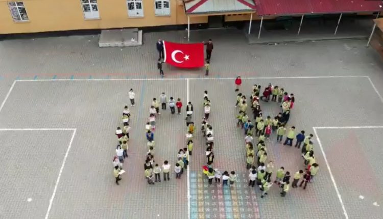 Daha sonra İstiklal Marşı’nı okuyan öğrenciler, okulun bahçesinde koreografiyle “İdlib” yazıp Türk bayrağı açtı. Etkinlikte tüm şehitler için dua edildi.