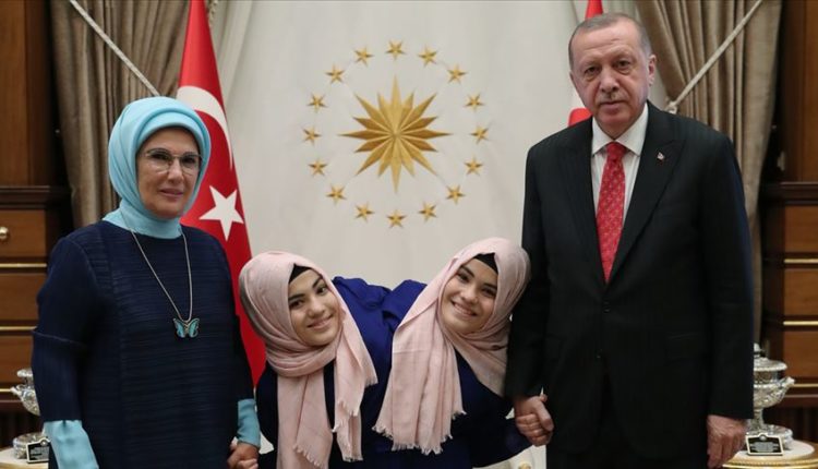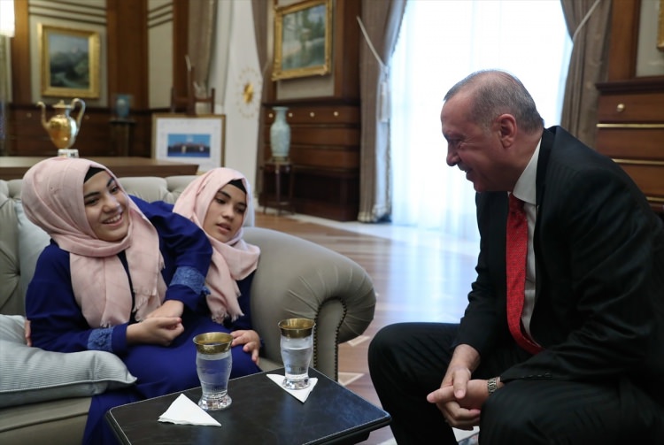 Cumhurbaşkanı Recep Tayyip Erdoğan ve eşi Emine Erdoğan, Cumhurbaşkanlığı Külliyesi’nde Kahramanmaraş’ın Türkoğlu ilçesinde yaşayan siyam ikizleri Ayşe ve Sema Tanrıkulu’yu kabul etti.