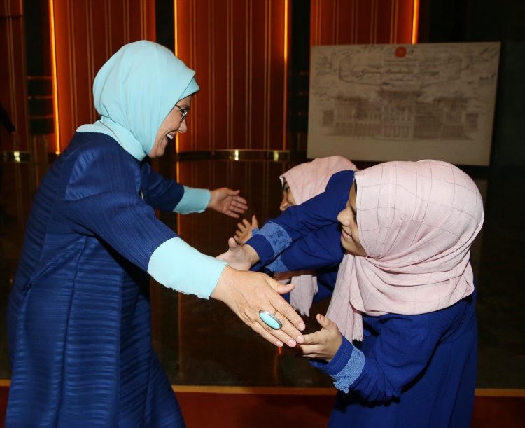 Cumhurbaşkanı Erdoğan ve eşi Emine Erdoğan’ın kabulüyle siyam ikizleri bugün Cumhurbaşkanlığı Külliyesi’ne geldi.