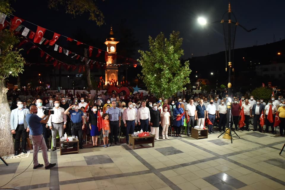 Millet Meydanı’nda düzenlenen etkinlik ve Demokrasi Nöbeti’ne Vali Yardımcısı Kaymakam Vekili Mahmut Hersanlıoğlu, Türkoğlu Belediye Başkanı Osman Okumuş, Ak Parti Türkoğlu İlçe Başkanı Feyzettin Okumuş, kurum amirleri ve vatandaşlar katıldı.