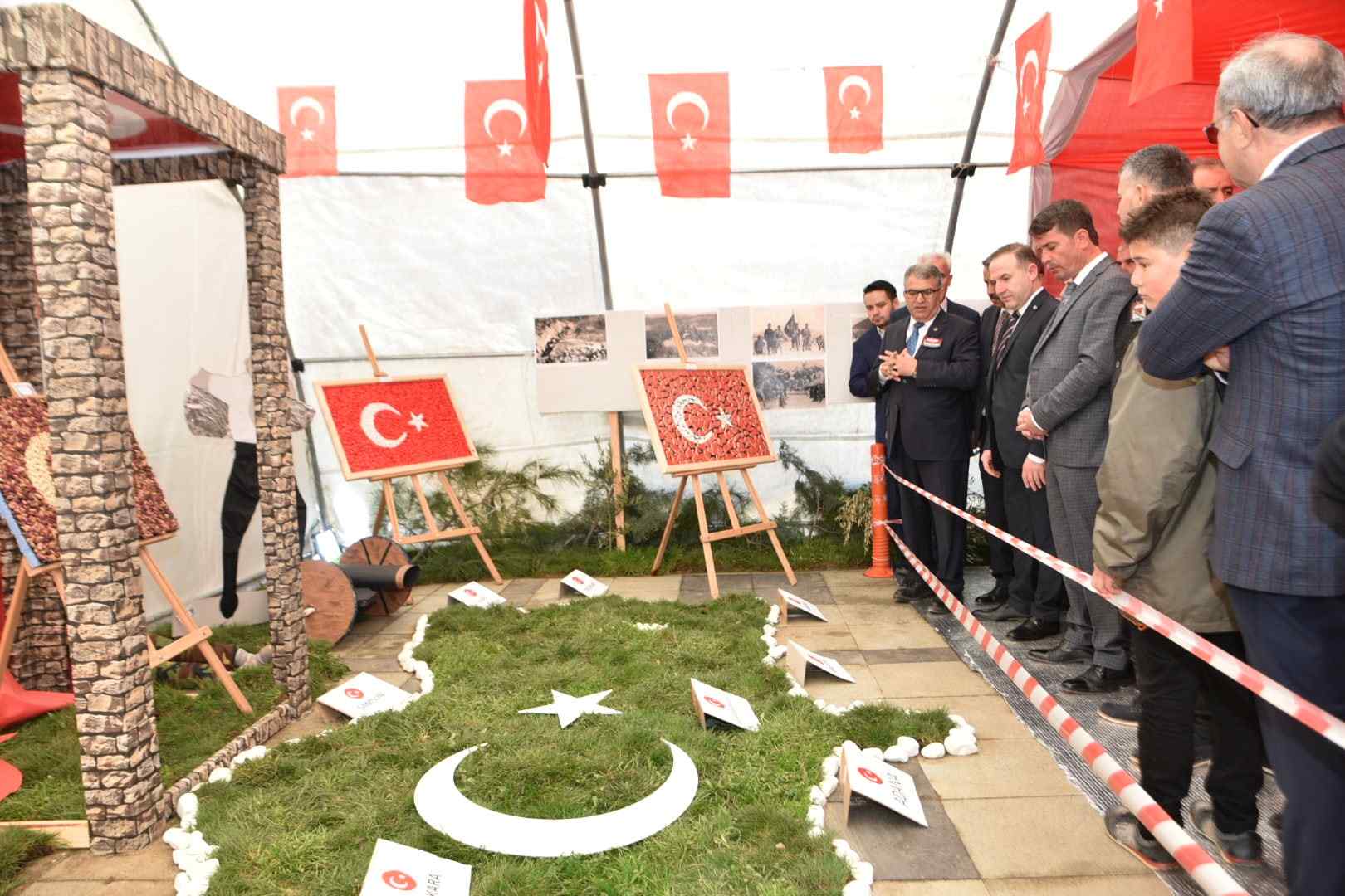 Sergide savaşı anlatan maketlerin yanı sıra şehitlerin isimlerinin üzerlerinde yer aldığı temsili mezarları da yer aldı.