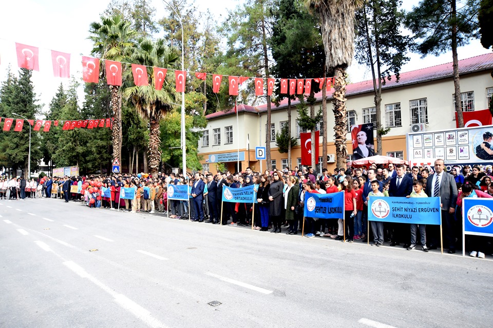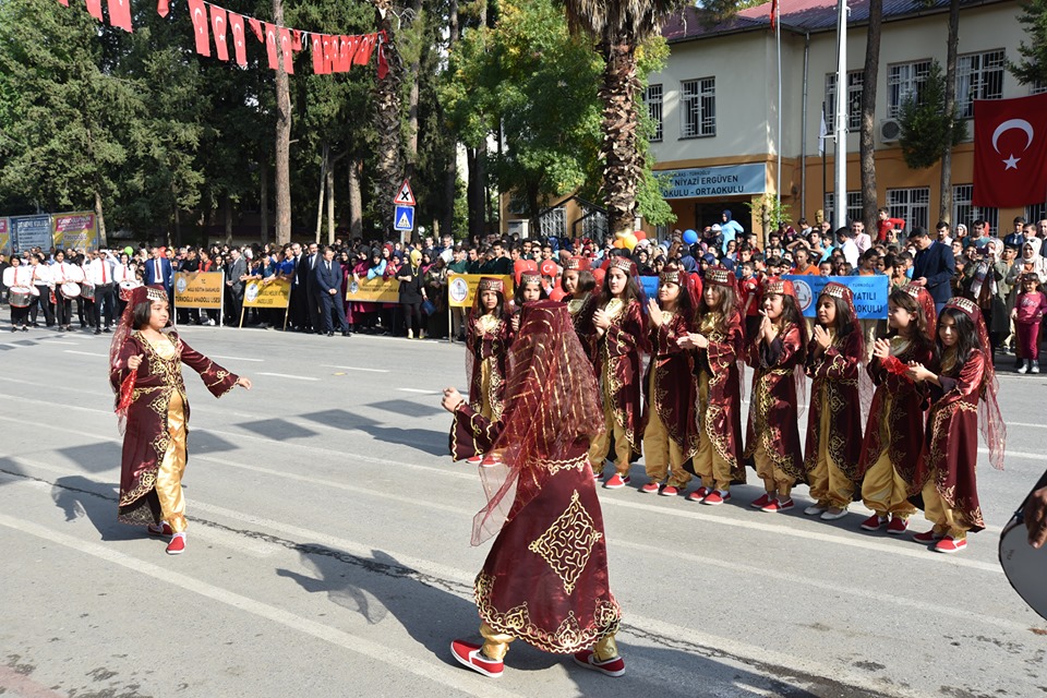 Türkoğlu ilçesinde 29 Ekim Cumhuriyet Bayramı Kutlamaları saygı duruşu ve İstiklal Marşı’nın ardından, Türkoğlu Kaymakamı Gürbüz SALTAŞ’ın konuşmaları, şiirlerin okunması, halk oyunu gösterileri ve tören geçişi ile son buldu.