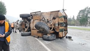 Hatay 47. Komando Tugay Komutanlığına ait (5) araçlık askeri araç konvoyunun Hatay İli istikametinden Kahramanmaraş İli istikametine seyir ederken konvoyda bulunan ve İ. Ş. nin sürücülüğünü yaptığı kirpinin Türkoğlu İlçesi Beyoğlu Mahallesi mevkiinde yolun viraj kısmında direksiyon hakimiyetini kaybetmesi sonucu, aracın karşı yola geçerek yan yatmasıyla kaza meydana gelmiştir.