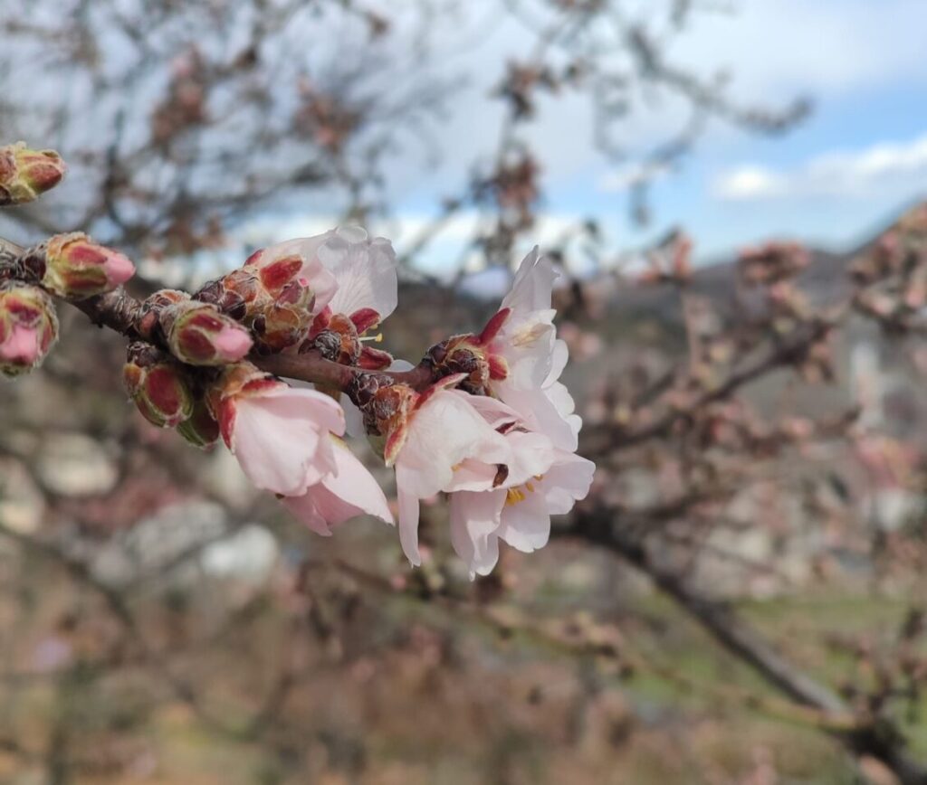 Kahramanmaraş’ta havaların eksilerde seyretmesine rağmen baharın müjdecisi olan badem ağaçları çiçek açtı.