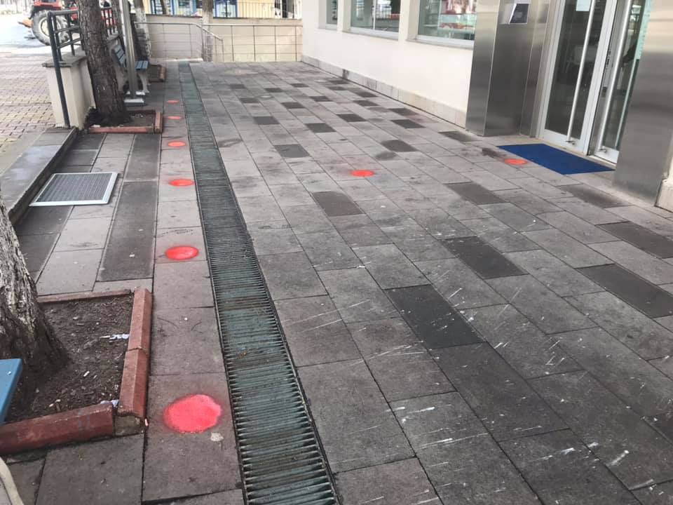 Korona olarak bilinen Covid-19 virüsünün yayılmasına engel olmak amacıyla sosyal mesafeyi korumak için Ziraat Bankası Türkoğlu Şubesi önünde bekleme noktası oluşturuldu.