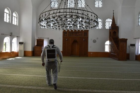 Türkoğlu Belediyesinden yapılan açıklamada: ” ekiplerimiz, korona virüs tedbirleri kapsamında hijyen seferberliğine ara vermeden devam ediyor. Cuma Namazı öncesi camilerimizde hijyen ve dezenfekte çalışmalarımızı tamamladık.” denildi.
