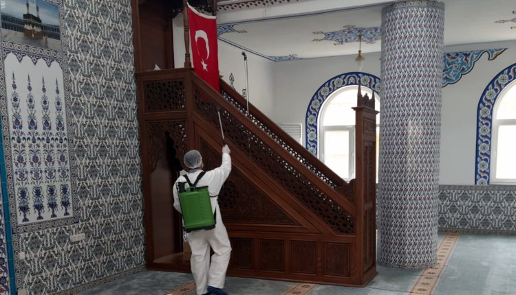 Kahramanmaraş’ın Türkoğlu ilçesinde korona virüs tedbirleri kapsamında camiler dezenfekte ediliyor.