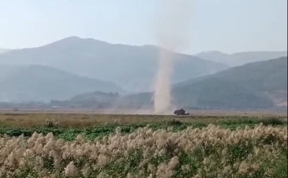 Hortumu gören çiftçiler kısa süreliğine paniklerken meydana gelen hortum cep telefonları ile görüntülendi.