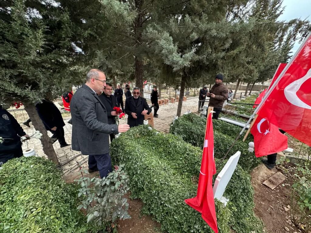 Türkoğlu Merkez Mezarlığında düzenlenen anma programına Kaymakamıl Mustafa Nevzat MERCAN ve Belediye Başkanı Mehmet KARACA, kamu kurum ve kuruluşlarının müdürleri ve depremde hayatını kaybeden aziz şehitlerimizin yakınları katıldılar.