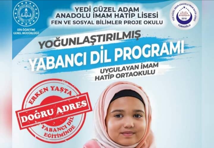 Kahramanmaraş’ın Türkoğlu ilçesinde Yedi Güzel Adam Anadolu İmam Hatip Lisesi (Fen ve Sosyal Bilimler Proje Okulu) bünyesinde İngilizce Dil Eğitimi Ağırlıklı Proje İmam Hatip Ortaokulu Açıldı.