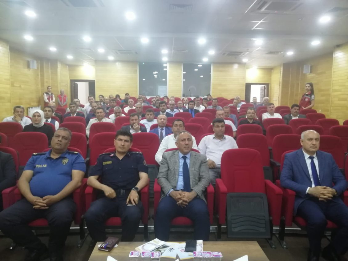 Türkoğlu Kaymakamlığı Toplantı Salonunda okul yönetimi ve Okul Aile Birliği Başkanlarının bulunduğu kitleye yönelik olarak Kahramanmaraş Şiddet Önleme ve İzleme Merkezi personeli tarafından erken yaşta evliliği tanımı, sebepleri ve sonuçlarına yönelik ayrıntılı sunum ve bilgilendirme yapıldı.