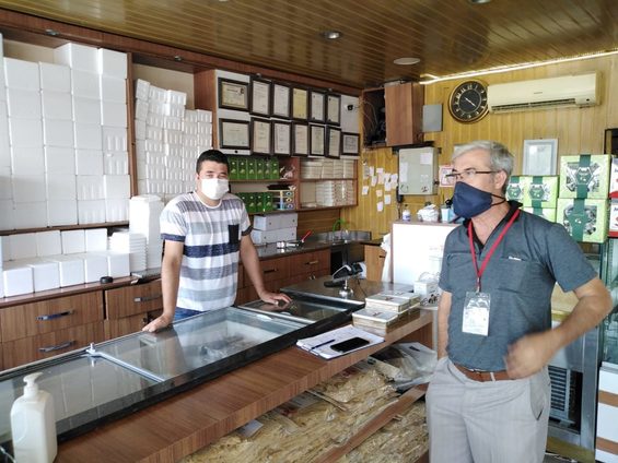 Türkoğlu İlçe Tarım ve Orman Müdürlüğü teknik personeli tarafından Covid-19 Tedbirleri kapsamında ilçede faaliyet gösteren lokanta, restoran, kafe ve fırın gibi gıda ile yemek sektöründe faaliyet gösteren iş yerlerinde kontrollü temizlik, maske ve sosyal mesafe kurallarına uyum konusunda denetimler rutin olarak yapılıyor.