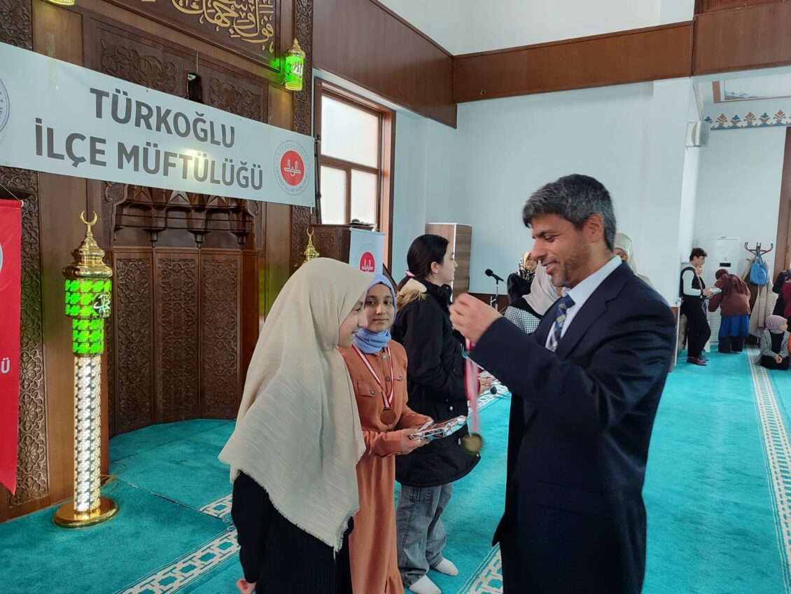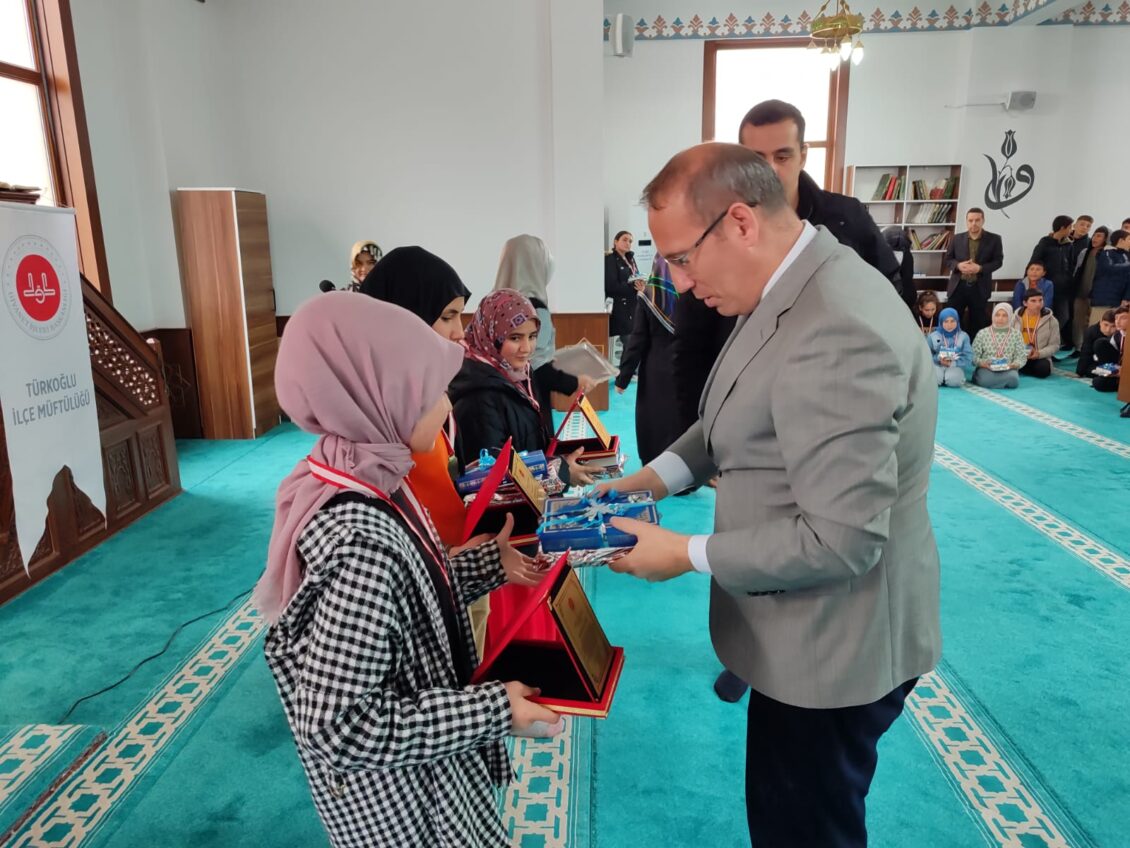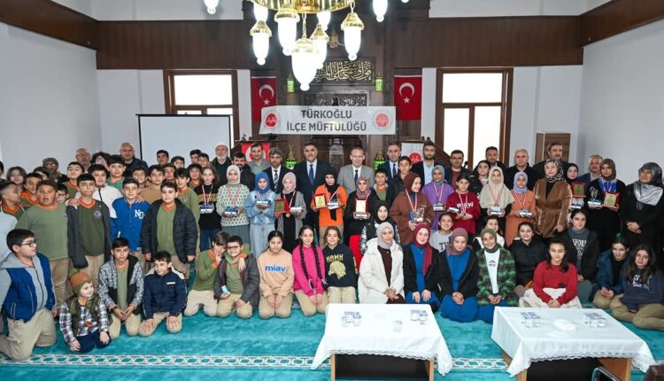 Kahramanmaraş’ın Türkoğlu ilçesinde “Peygamberimi Seviyorum, Hadislerini Ezberliyorum” temalı Hadis Ezber Yarışması’na katılan ve dereceye giren öğrenciler için ödül töreni yapıldı.