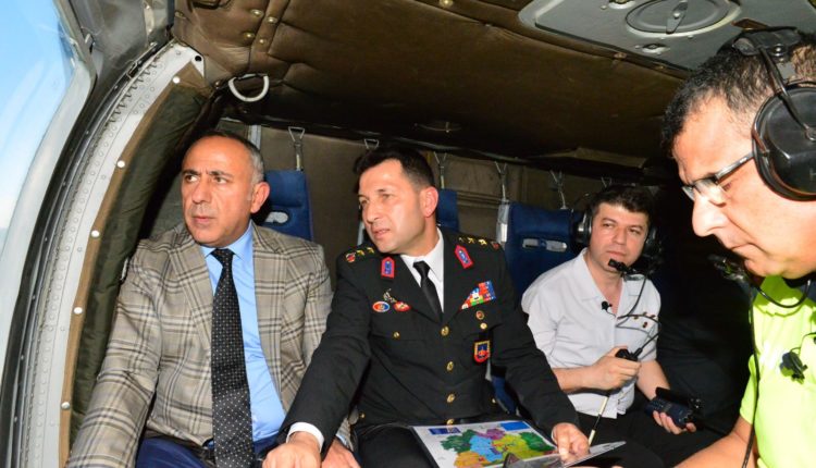 Kahramanmaraş’ın Türkoğlu ilçesinde Jandarma helikopteri tarafından havadan trafik denetimleri yapıldı.