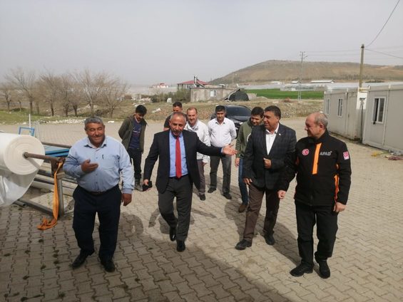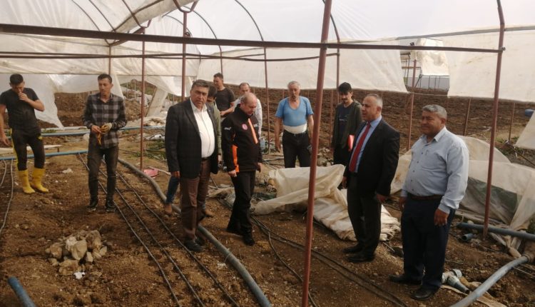 Türkoğlu Kaymakamı Mahmut HERSANLIOĞLU , Kadıoğlu Çiftliği Mahallesi’nde İl Afet ve Acil Durum Müdürü Aslan Mehmet ÇOŞKUN ve Tarım ve Orman Müdürü Hikmet KAÇAR ile birlikte tekrar üretime kazandırılma çalışmaları devam eden seralarda incelemelerde bulundu.