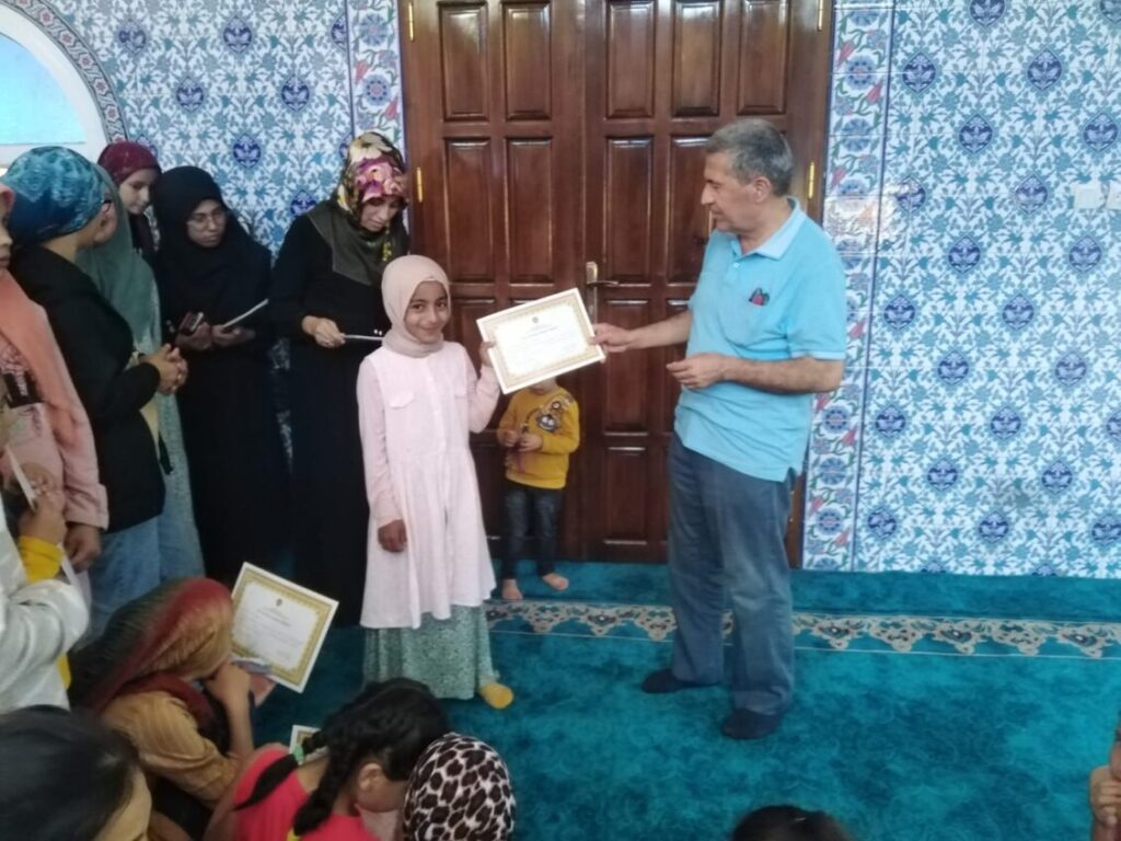 35 öğrencisi olduğunu söyleyen Kur’an Kursu hocası Fatmanur Sakar, “Öğrencilerimin bir kısmı cüzdeydi, bir kısmı dualardaydı, bir kısmı da Kur’an-ı Kerim’deydi. 6 haftalık bir süreçti. Hepsinden Allah razı olsun. Hepsi zamanını ayırıp geldi. Özellikle buraya gönderen anne babalara çok teşekkür ediyorum. Öğrencilerin beni hiç üzmedi ve başarılarından dolayı onlara teşekkür ediyorum” ifadesini kullandı.