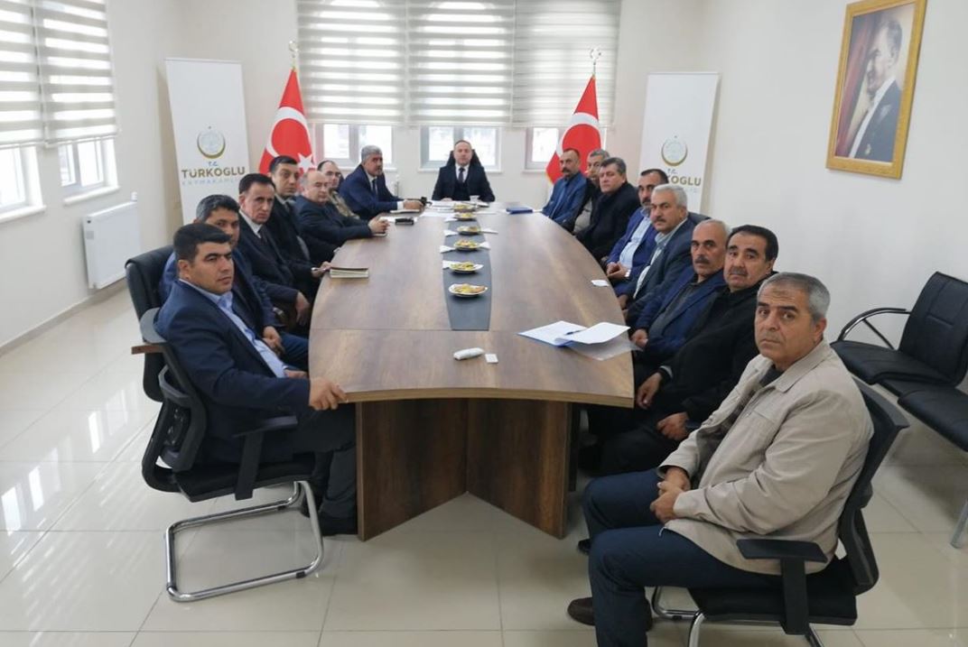 Muhtar toplantısına Türkoğlu Kaymakamı Gürbüz SALTAŞ‘ın yanı sıra kolluk kuvvetleri Türkoğlu ilçe Jandarma Komutanı ile Türkoğlu İlçe Emniyet Amiri, kamu kurum daire amirleri ve mahalle muhtarları katıldı.