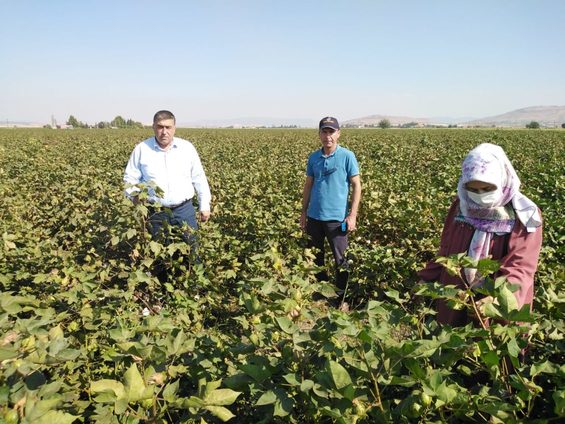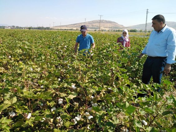Kahramanmaraş’ın Türkoğlu ilçesinde pamuk ekili alanlarda kontrol çalışmaları devam ediyor.