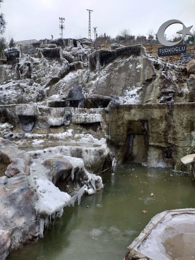 Aşırı soğuklardan Türkoğlu ilçe merkezinde bulunan yapay şelale de etkilendi. İmalı Çayı Rekreasyon Alanı kapsamında Türkoğlu Belediyesi tarafından yaptırılan park içerisinde yer alan yapay şelale soğuklar nedeniyle buz tuttu.