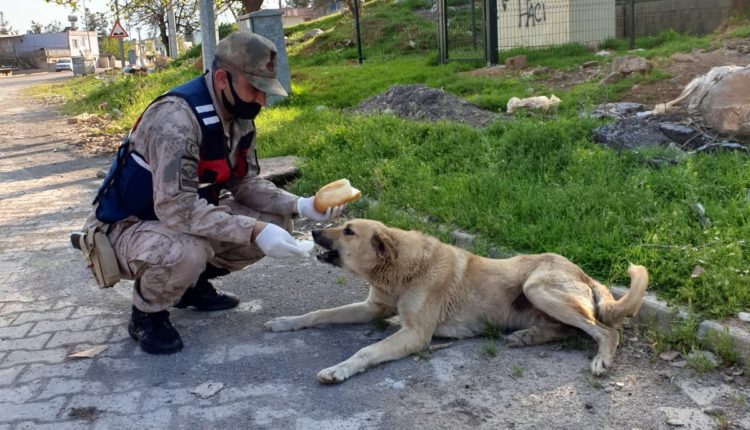 İçişleri Bakanlığı genelgesiyle hafta sonunda sokağa çıkma yasağı uygulanan büyükşehirler arasında bulunan Kahramanmaraş’ın Türkoğlu İlçesi Jandarma Komutanlığı ekipleri,sokaktaki hayvanları unutmadı. İki gündür vatandaşların evlerinde kaldığı ilçede yiyecek bulmakta güçlük çeken hayvanları jandarma ekipleri sokak sokak gezerek, yiyecek verdi.